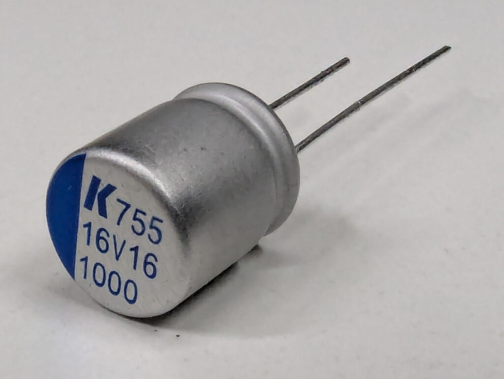 Specimen 2: KEMET A755, 1000uF 16V (from Mouser)